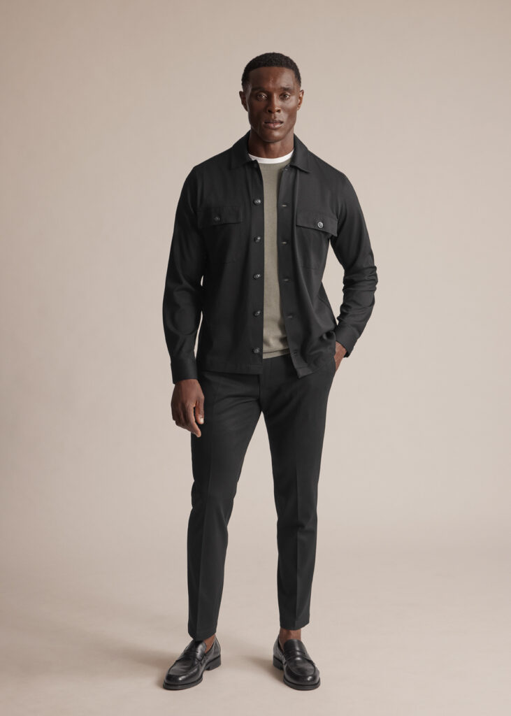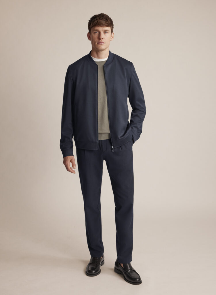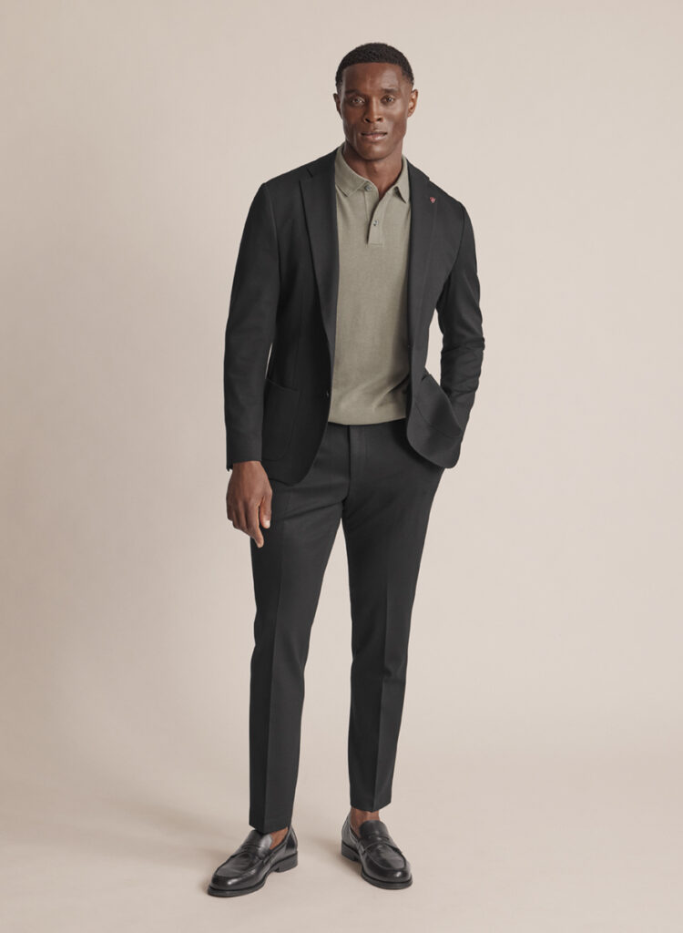 Die Farbpalette aus ausgewählten Tönen wie Taupe, Dunkelblau oder Schwarz schaffen endlose Kombinationsmöglichkeiten: tonal oder farblich abgestimmt. Eine neue Definition von Business-Looks: anspruchsvoll und trotzdem mit extra viel Komfort.